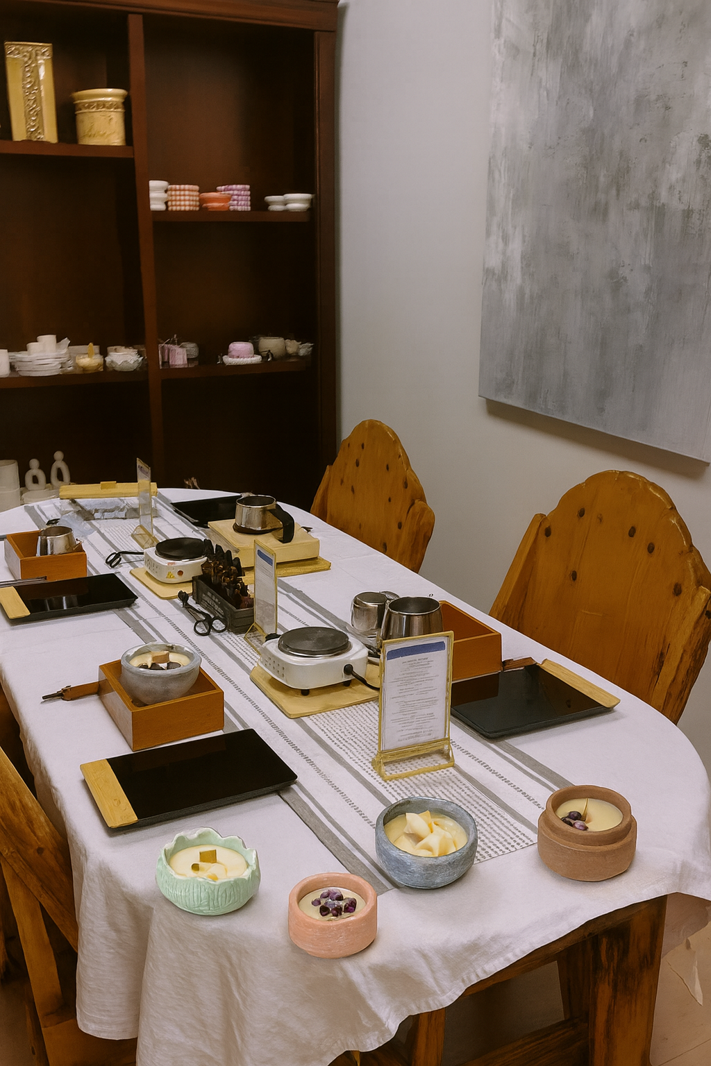 Choisissez votre fragrance, coulez votre bougie dans un pot artisanal façonné à la main, puis repartez avec une pièce unique qui allie charme et savoir-faire local.